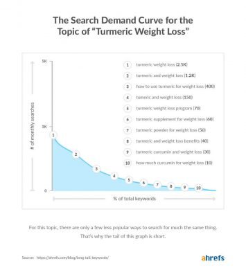 Some long-tail keywords are topics in their own right, like “turmeric weight loss.”