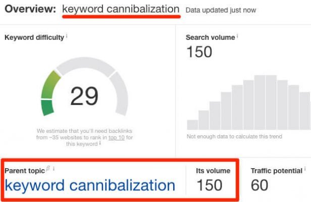 Furthermore, if we put the keyword into Ahrefs’ Keywords Explorer, we’ll see the same Parent topic.