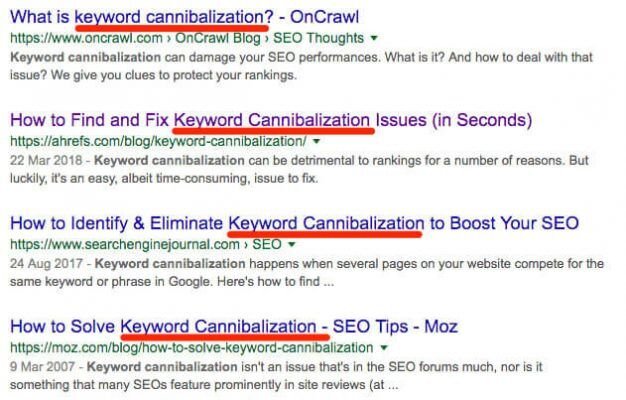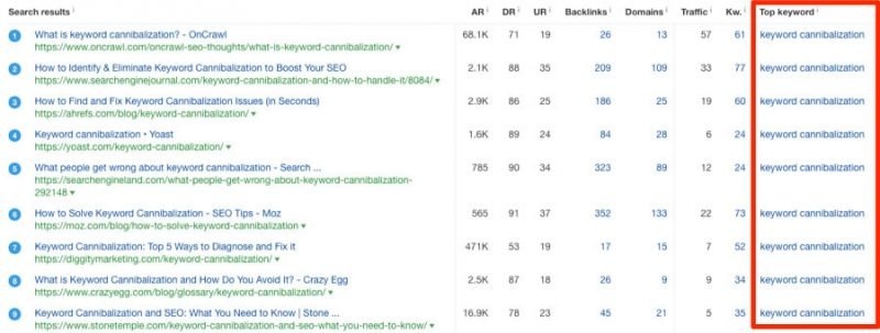It’s clear then that “keyword cannibalization” is not part of a broader topic. If it were, the top-ranking pages would be focused on more general topics.