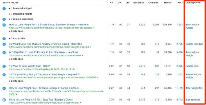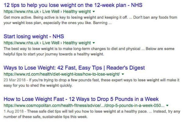 Below are some of the top-ranking pages for the query “how can I lose some weight”: