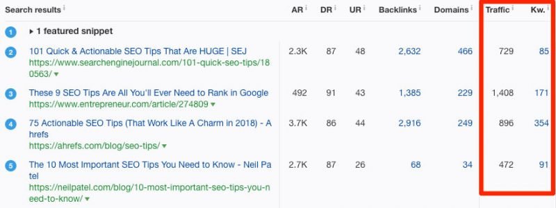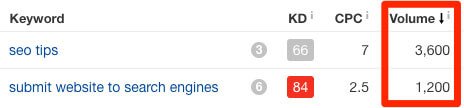 Clearly, the query “SEO tips” is a better keyword to target, right? I mean, it has 3 times more search volume, so trying to rank for that would certainly bring the most traffic.