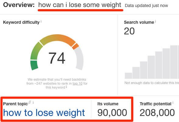 None of these pages have “how can I lose some weight” as their top keyword, which further confirms that this is a supporting long-tail keyword.