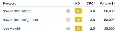 Now, let’s compare this with a popular term like “weight loss” (this keyword has about 98,000 monthly searches):
