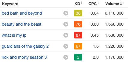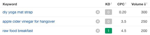 And as you can tell from the Keyword Difficulty (KD), it’s very easy to rank for those keywords.