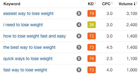For the keyword “easiest way to lose weight,” which has 3,000 monthly searches, equivalent to “turmeric weight loss.” Does that mean this keyword is also easy to rank for with its low popularity?