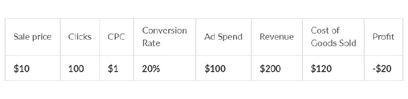 If you sell a product for $10, then pay $1 per click with a 20% conversion rate, that means you’re paying twice for that advertising.