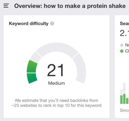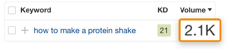 For example: take a query “how to make a protein shake” we see 2,100 searches per month for this topic.