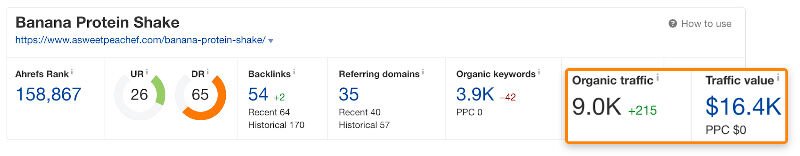 The top-ranking page for that keyword gets about 9,000 monthly visits. However, the estimated PPC value to get that traffic is $16,400.