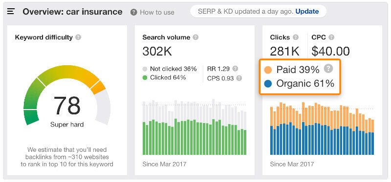For that search keyword, nearly 40% will direct users to paid results.