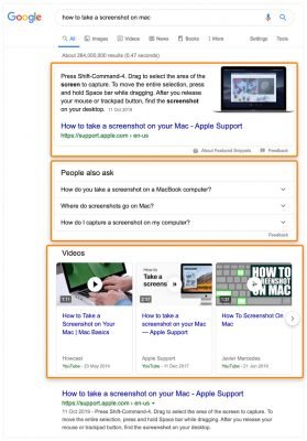 Google has now started displaying SERP features like featured snippets, “People also Ask” boxes, and video sections for some queries.